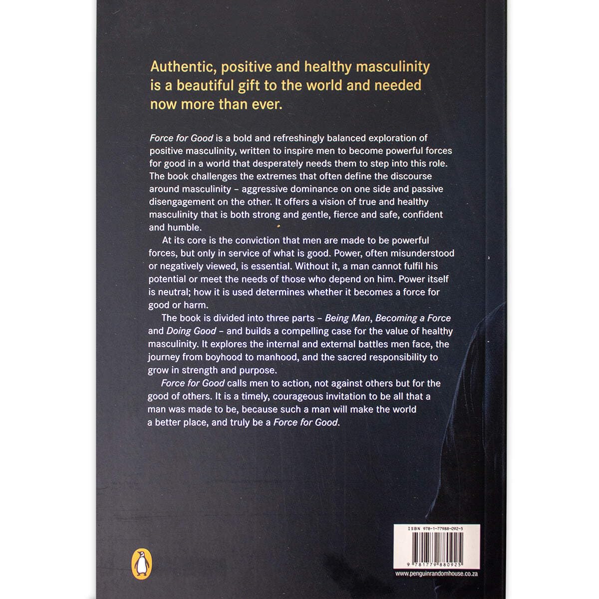Force for Good is a bold and refreshingly balanced exploration of positive masculinity, written to inspire men to become powerful forces for good in a world that desperately needs them to step into this role. The book challenges the extremes that often define the discourse around masculinity – aggressive dominance on one side and passive disengagement on the other. It offers a vision of true and healthy masculinity that is both strong and gentle, fierce and safe, confident and humble.